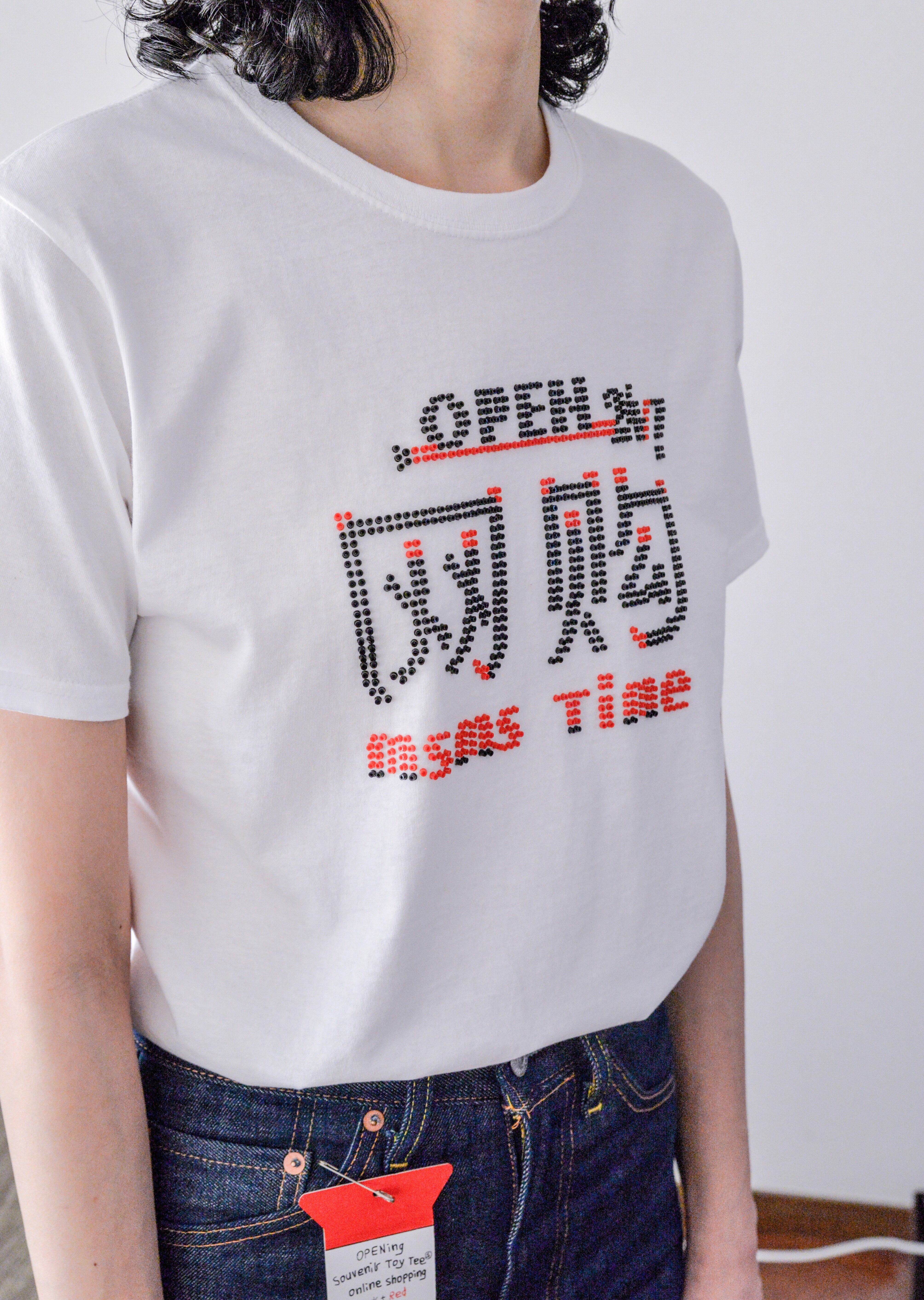オープン記念に製作した、このTシャツには中国語でオンラインショッピングの略が入っています。いつでもお好きな時間に(OPEN 24/7(24時間営業))ms ms Time(ムズムズタイム)を楽しんで下さい。