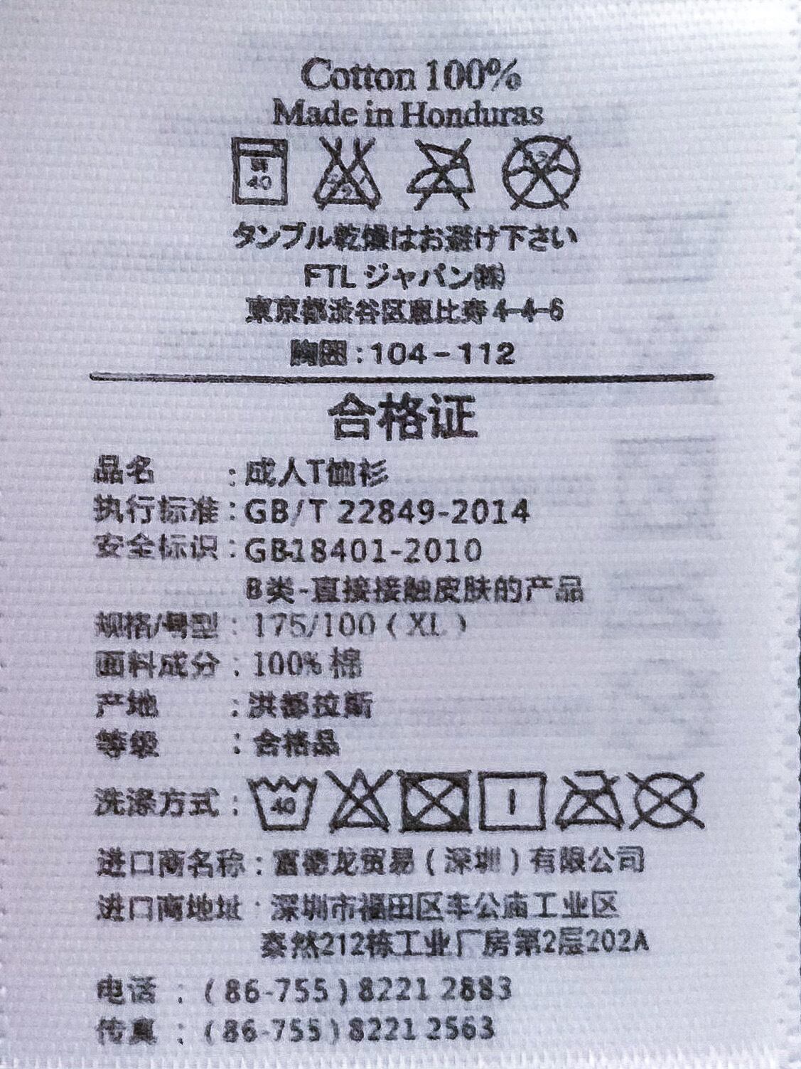 ※Tシャツ自体の洗濯表示と併せてご確認下さい
