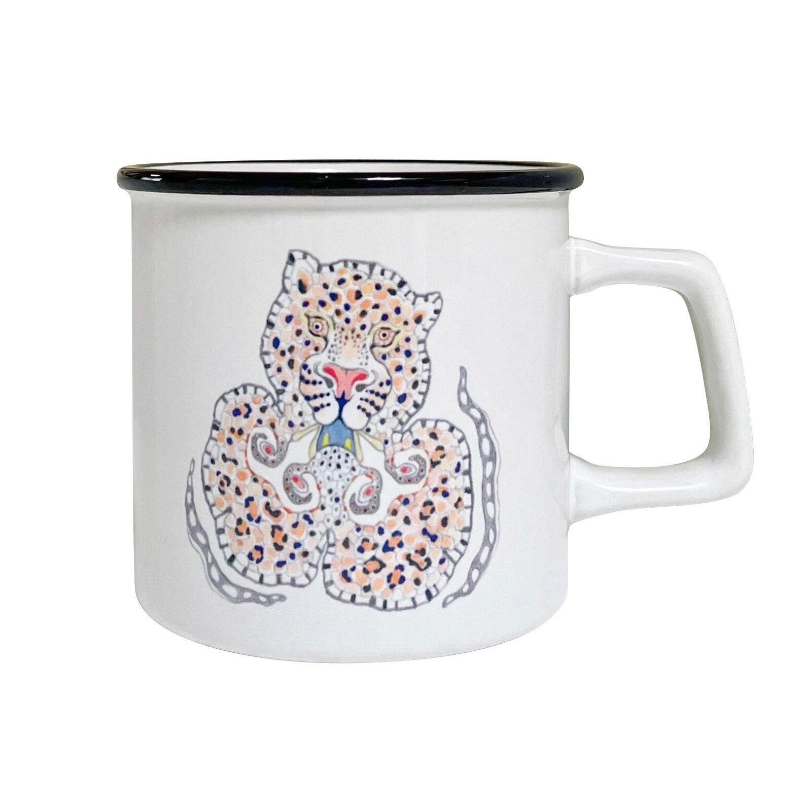 全然隠れてないけど、植物の断面にパンサーがかくれんぼ❣️形もかわいい陶器製のマグカップです。