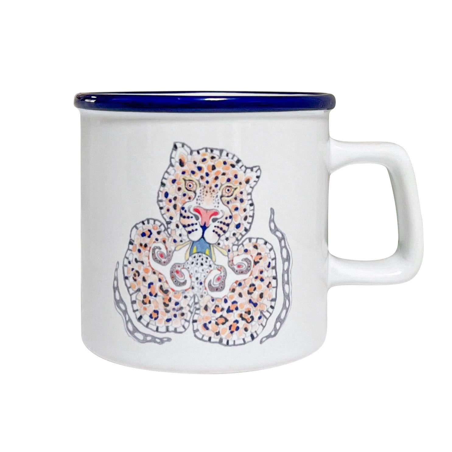 全然隠れてないけど、植物の断面にパンサーがかくれんぼ❣️形もかわいい陶器製のマグカップです。