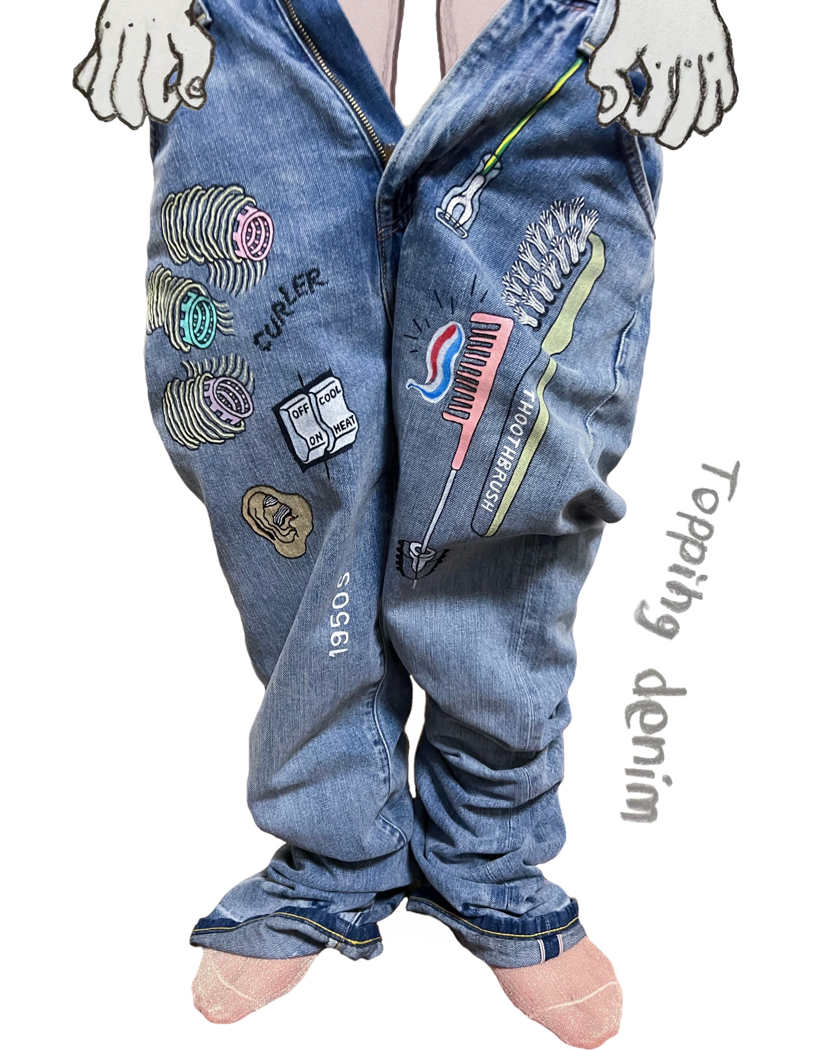 いろいろなモチーフを、手刺繍や手描きでトッピング❣️ハイウエストで、パンツ自体も可愛いです。