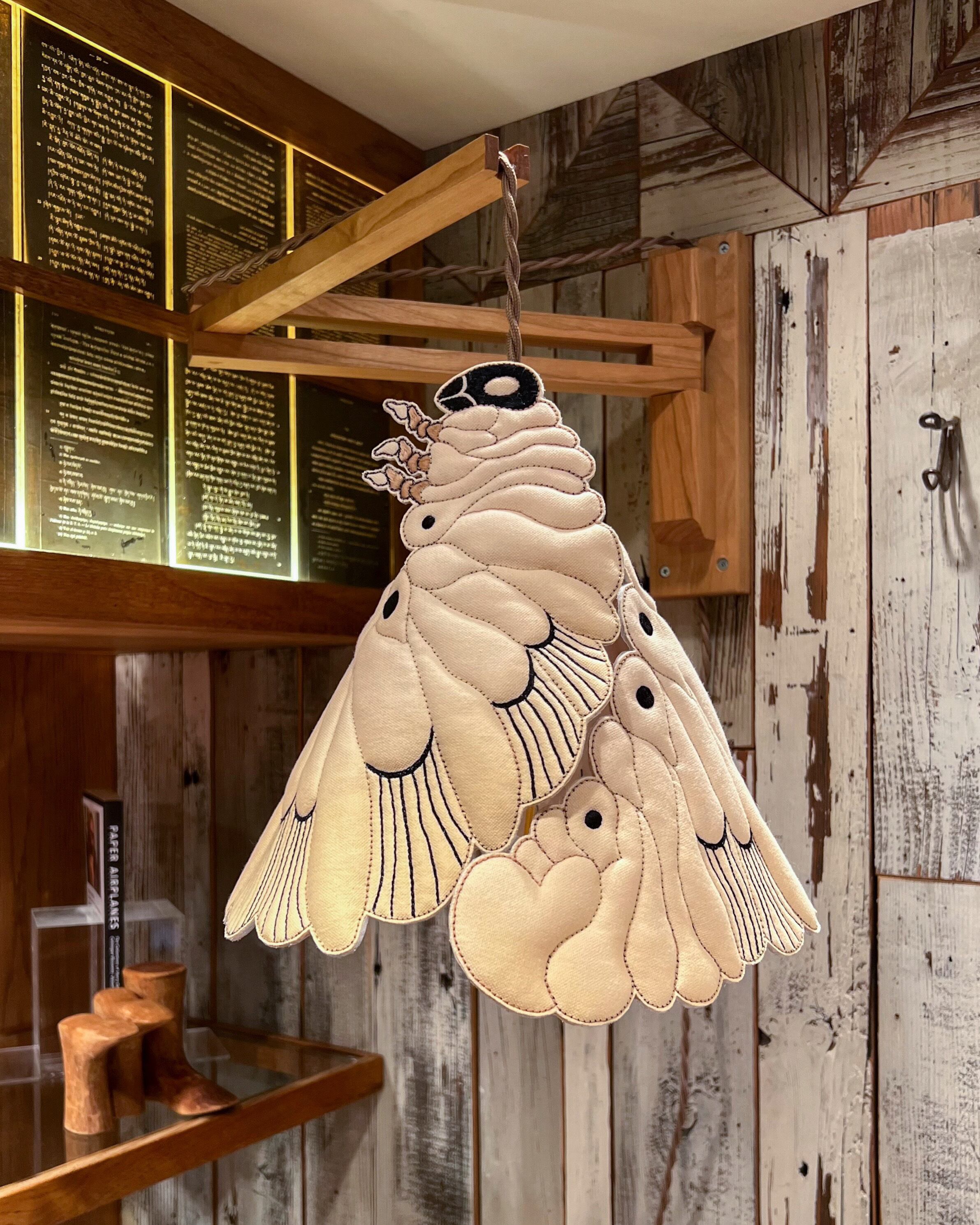 こだわりが詰まった、個性的なキルトの幼虫ランプ